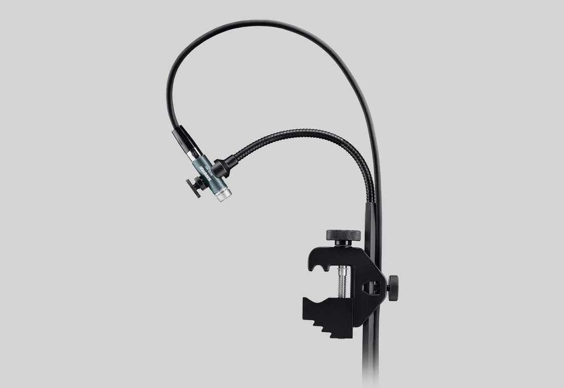 配備裝有靈活鵝頸的A98D鼓用話筒支架,可確保精確擺放和牢固安裝