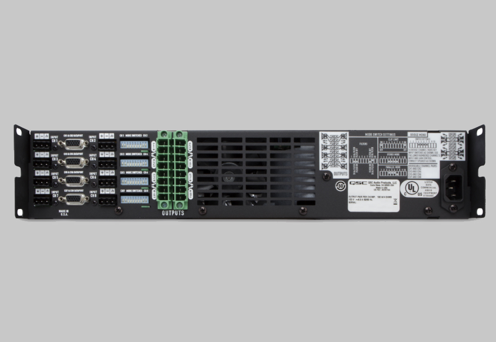 四個(gè)HD15 DataPort連接器(每個(gè)通道一對(duì))用于Q-SYS聯(lián)網(wǎng)控制和監(jiān)視